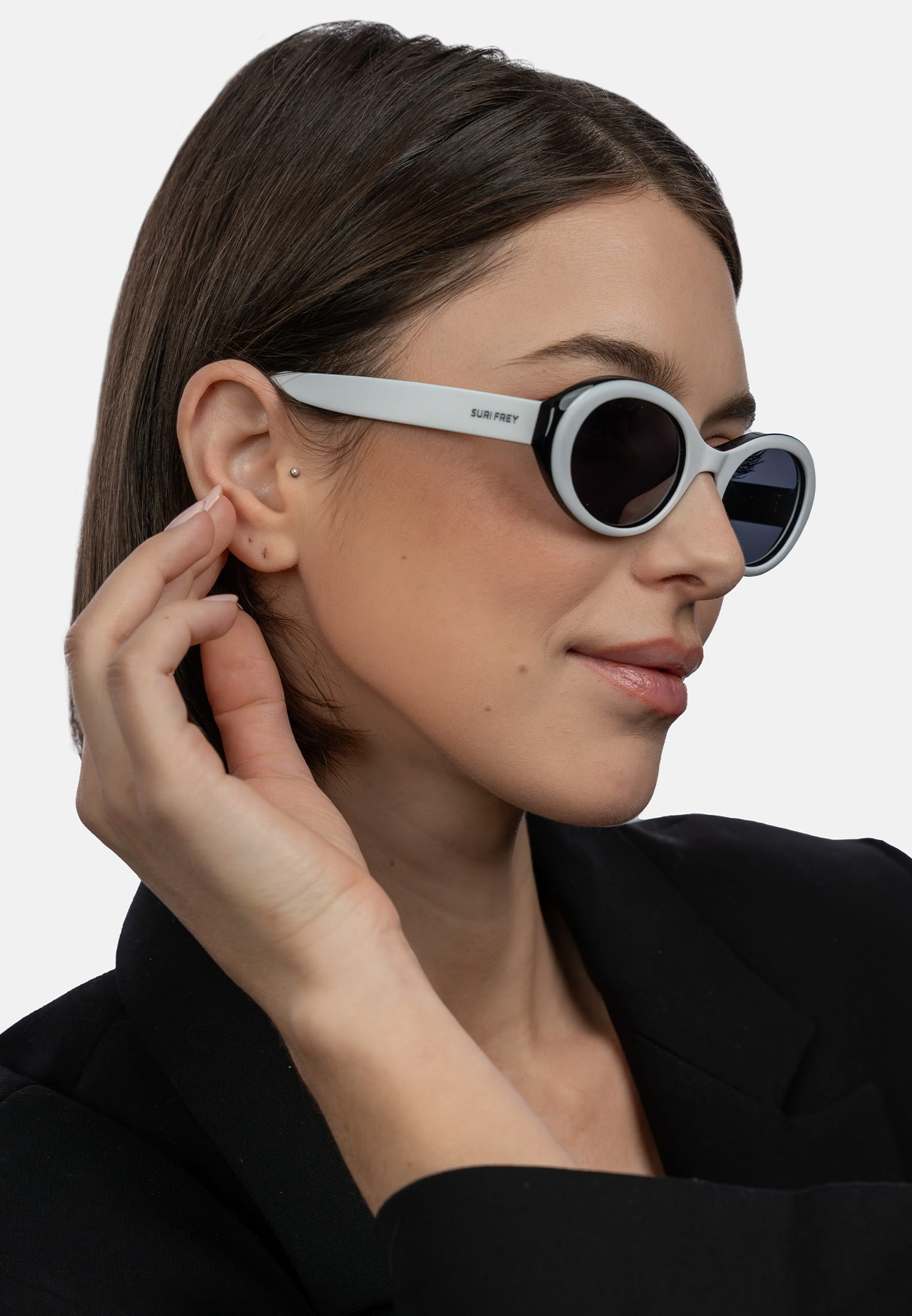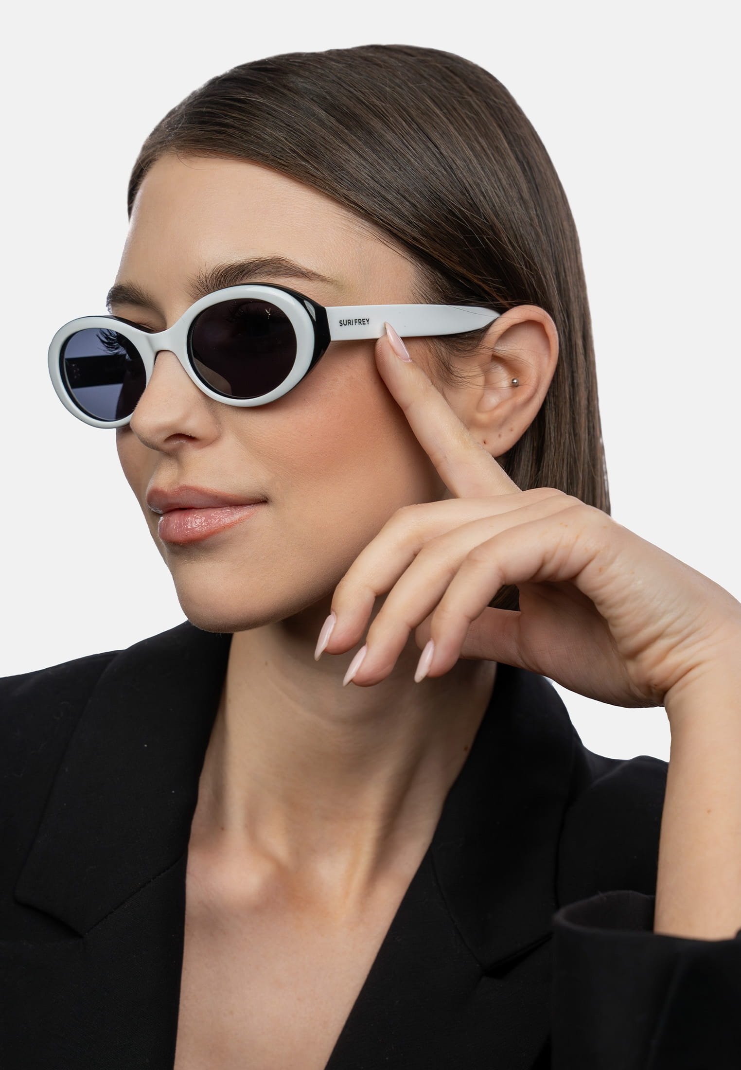 With their oval-shaped acetate frame, they particularly flatter heart-shaped faces. The clean lines and subtle SURI FREY lettering on the temple give them an elegant restraint – a design that complements every look without losing its uniqueness.