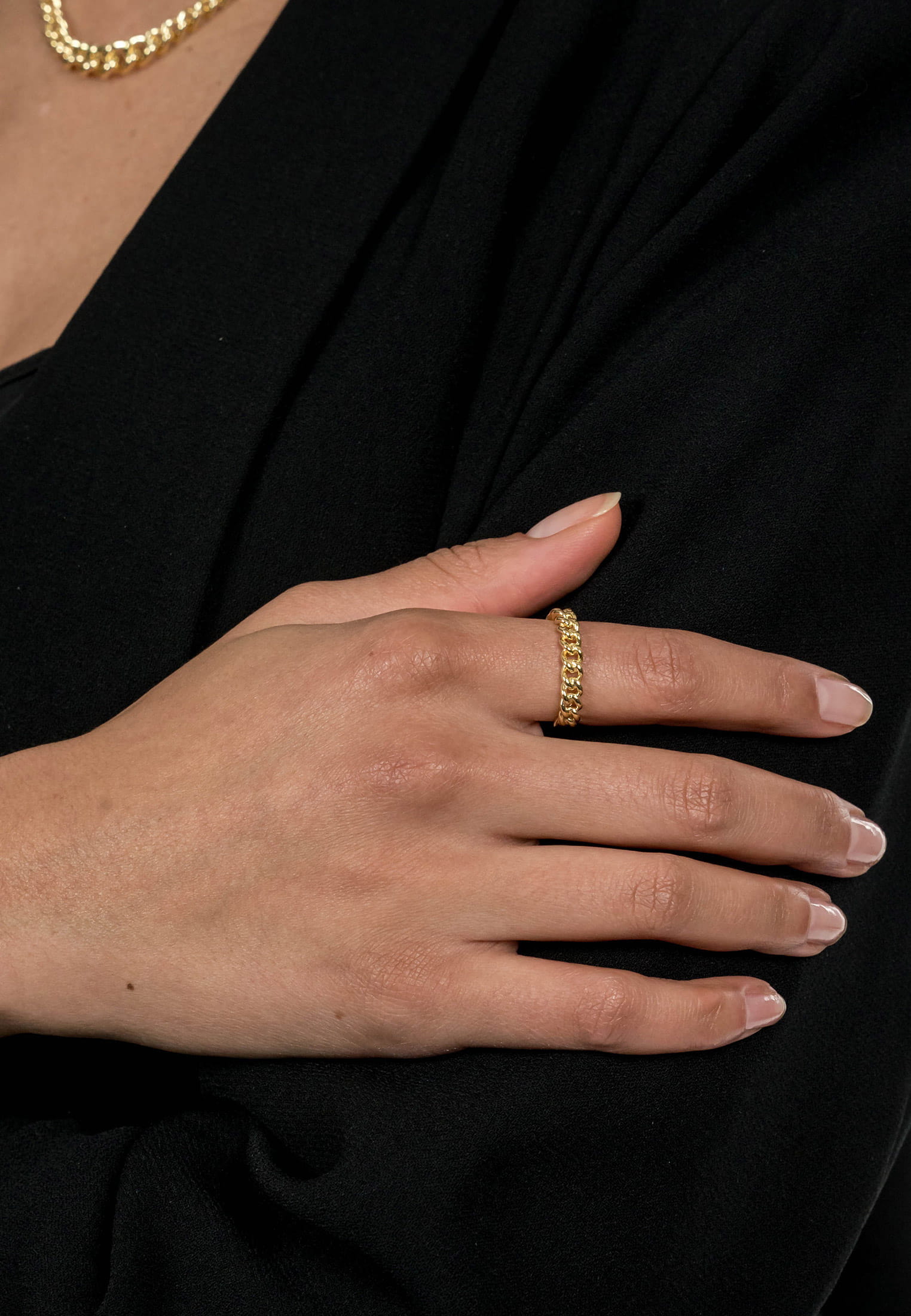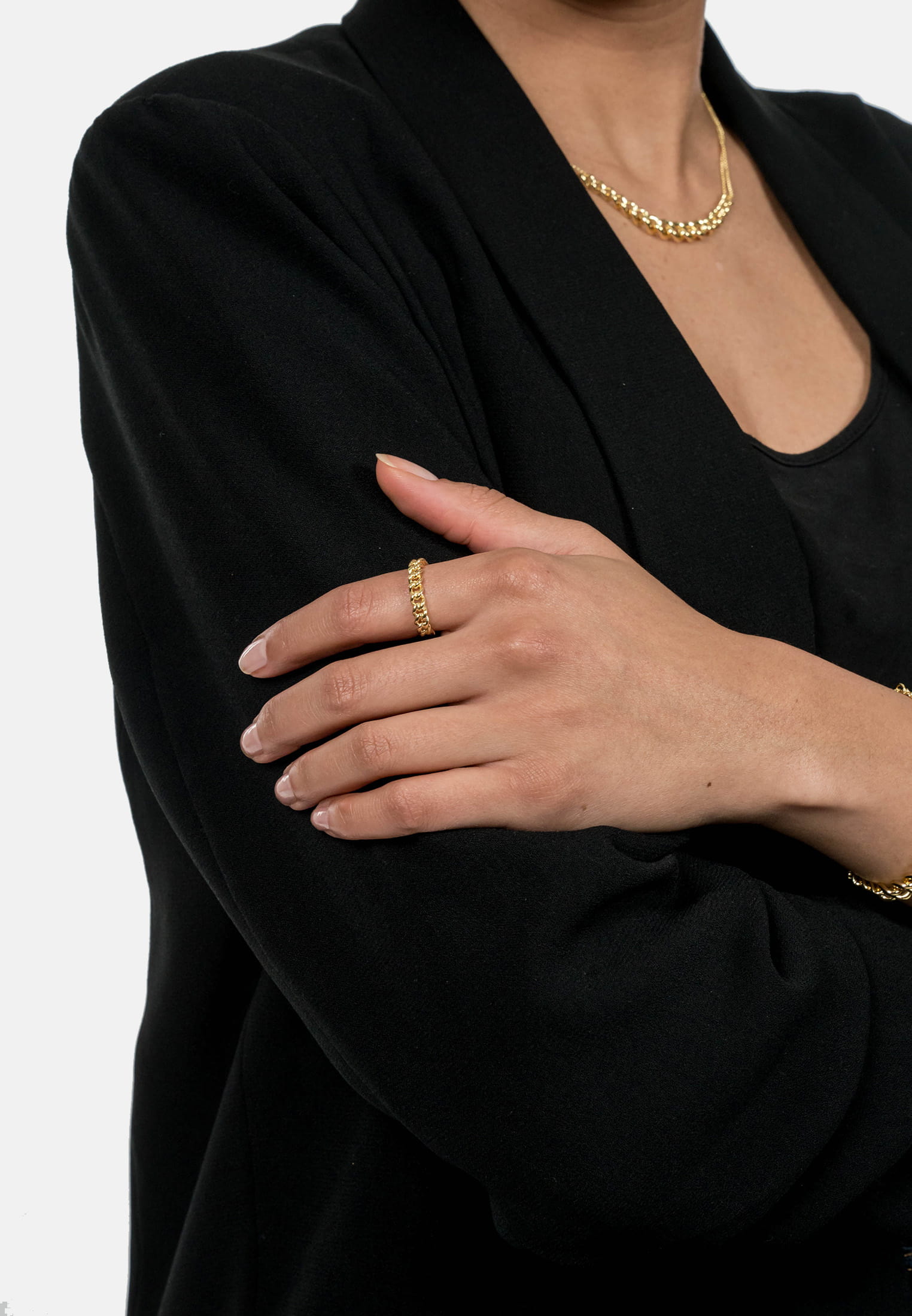 Tauche ein in die Welt raffinierter Eleganz mit unserem hochmodischen Ring in atemberaubender Panzerketten-Optik – der Ring SFY Sally. Ein außergewöhnliches Juwel, das die Vereinigung kraftvoller Raffinesse und zeitlosen Stils verkörpert. Unsere hochglänzende Kreation fängt das Licht ein und erzeugt einen faszinierenden Glanz. Hergestellt aus erstklassigem Sterling-Silber 925, präsentiert sich dieser Ring als Kunstwerk von Kreativität und höchster Qualität. Seine Panzerketten-Optik verleiht ihm einen kühnen, doch eleganten Look, der Aufmerksamkeit auf sich zieht und deinen persönlichen Stil unterstreicht. Ein Statement für Individualität und Modebewusstsein, der Ring SFY Sally ist nicht bloß ein Accessoire, sondern ein Ausdruck von Stil und Luxus. Perfekt für Frauen, die Wert auf Qualität legen und sich gerne mit einem Hauch von Luxus verwöhnen. Trage diesen Ring mit Stolz und entdecke seine Vielseitigkeit – sei es als Blickfang bei festlichen Anlässen oder als subtiler Akzent im Alltag. Mehr als nur ein Schmuckstück, ist dieser Ring eine Manifestation deines individuellen Stils und deiner Vorliebe für erstklassige Accessoires. Er unterstreicht nicht nur dein Outfit, sondern betont auch deine Einzigartigkeit und deinen Sinn für Stil. Erlebe zeitlose Schönheit und Qualität mit dem Ring SFY Sally von Suri Frey. Genieße diesen Hauch von Luxus und die Bewunderung, die dir mit diesem außergewöhnlichen Ring sicher sein werden. Denn der Ring SFY Sally ist mehr als nur Schmuck – er ist ein Begleiter, der deine Persönlichkeit und deinen Stil auf unvergleichliche Weise unterstreicht.