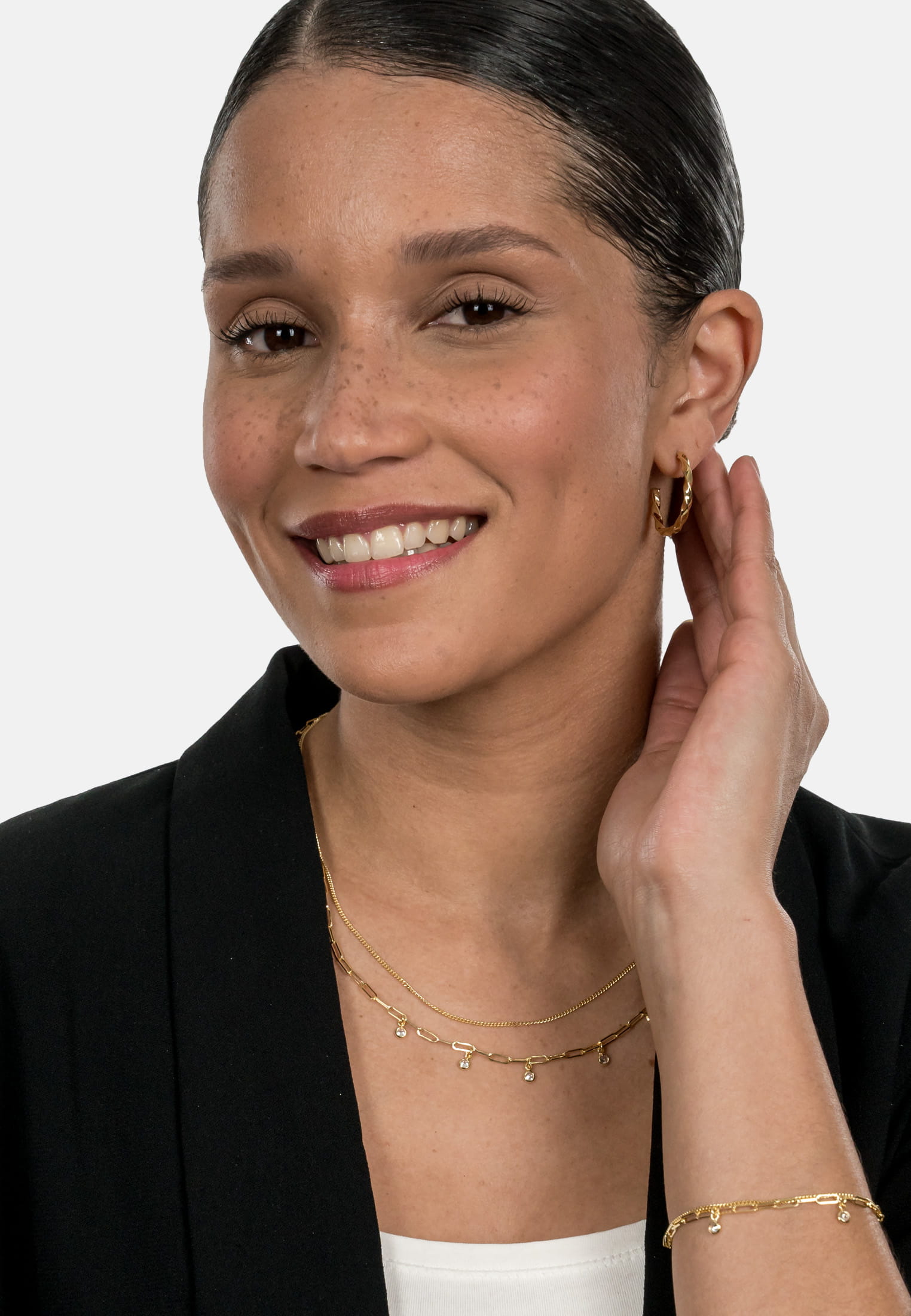 Tauche ein in unsere Welt zeitloser Eleganz mit den Ohrsteckern SFY Curly. Das markante Design dieser Steckcreole begeistert durch eine gedrehte Optik, die eine einzigartige Brillanz und unübertroffene Raffinesse verleiht. Die geschmeidige und fließende Formgebung reflektiert das Licht auf faszinierende Weise und erzeugt eine bezaubernde Strahlkraft. Die hochglänzende Oberfläche verstärkt diesen Effekt, verleiht dem Schmuckstück eine unwiderstehliche Ausstrahlung und garantiert dank hochwertigem Sterling-Silber 925 nicht nur eine ansprechende Optik, sondern auch Langlebigkeit über Jahre hinweg. Unsere hochwertige Vergoldung verleiht diesem Schmuckstück einen Hauch von Luxus, betont seine Qualität und Wertigkeit ohne aufdringlich zu wirken. Diese Creole ist mehr als ein Accessoire; sie ist ein Ausdruck zeitloser Schönheit und raffinierter Eleganz. Ihr auffälliges Design macht sie zum perfekten Begleiter für jeden Anlass – sei es im Alltag oder bei besonderen Festlichkeiten. Sie verleiht deinem Look eine einzigartige Note und zieht bewundernde Blicke auf sich. Unser hochwertiges Accessoire ist nicht nur ein Schmuckstück – es ist ein Statement für deinen individuellen Stil und deine Persönlichkeit. Ob als Geschenk für dich selbst oder für jemand Besonderen, diese Ohrstecker werden stets Bewunderung und Begeisterung hervorrufen. Entdecke die exquisite Welt von Suri Frey mit diesem außergewöhnlichen Ohrschmuck und setze ein Zeichen für zeitlose Schönheit und persönlichen Ausdruck.