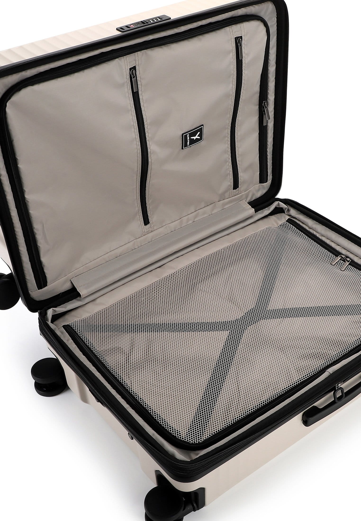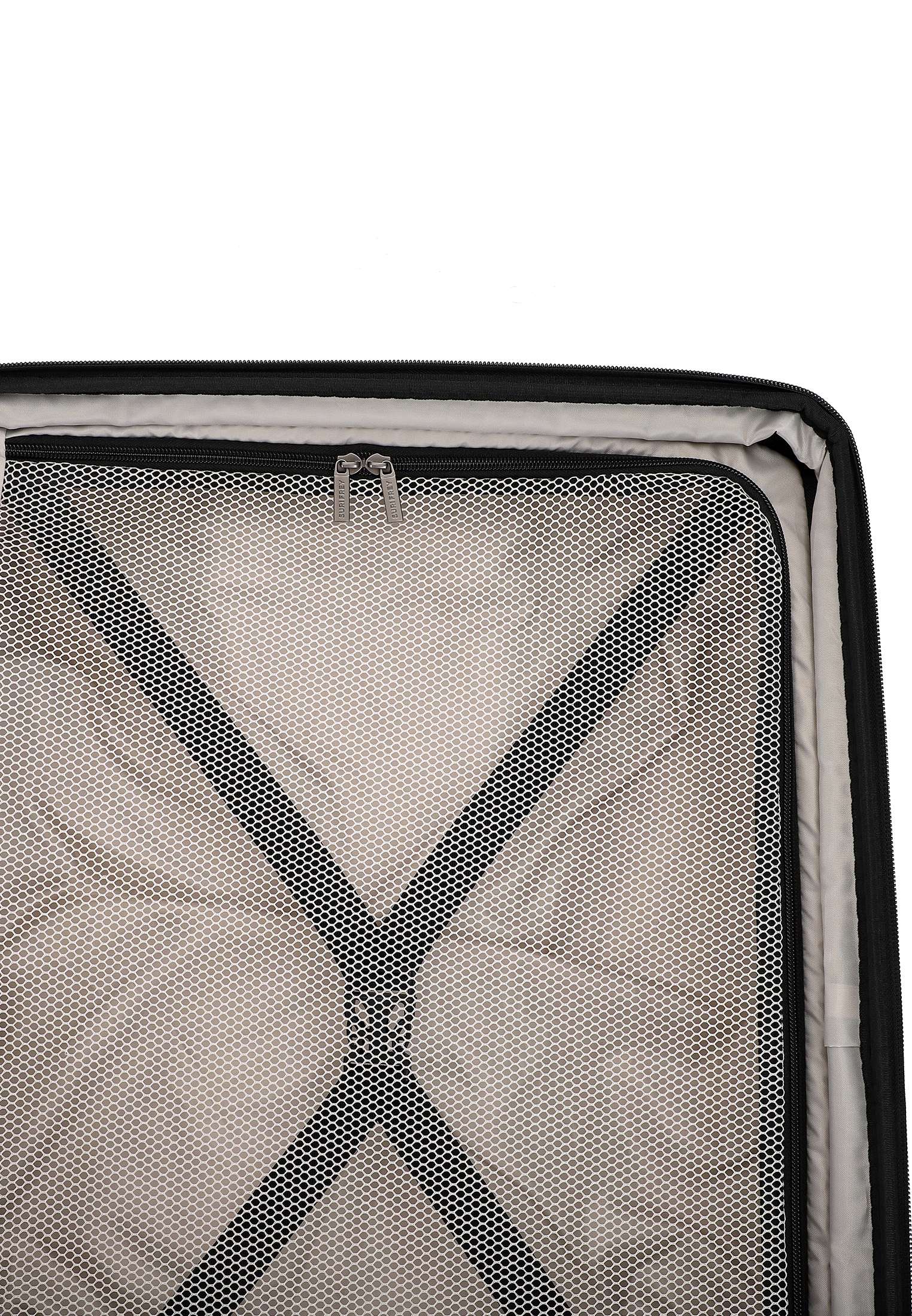Im Inneren sorgt eine strukturierte Aufteilung für Ordnung und Übersicht. Beide Kofferschalen sind mit elastischen Packgurten und Trennwänden ausgestattet. Während eine Seite über eine blickdichte Trennwand mit integrierten Taschen für Kleinteile verfügt, bietet die andere eine luftige Netztrennwand. So bleibt alles an seinem Platz, übersichtlich, griffbereit und sauber verstaut. Das herausnehmbare Innenfutter lässt sich zudem unkompliziert reinigen.